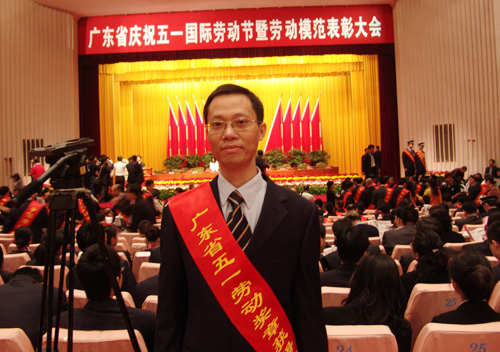4月28日上午,广东省委省政府庆祝“五一”国际劳动节暨劳动模范表彰大会在省委礼堂隆重举行。广州市国研机械设备制造有限公司市场部经理、广州市劳动模范刘启刚荣获广东省五一劳动奖章,并受到省委书记汪洋、省长黄华华等领导的亲切接见。